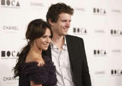 Actress Jennifer Love Hewitt (also seen with her boyfriend Alex Beh) arrives at the annual gala for The Museum of Contemporary Art, Los Angeles (MOCA), in Los Angeles on November 13, 2010. Hewitt wore an eggplant pleated Georgette and lace off the shoulder cocktail dress from Tadashi Shoji’s Fall 2010 Runway Collection. REUTERS/Danny Moloshok