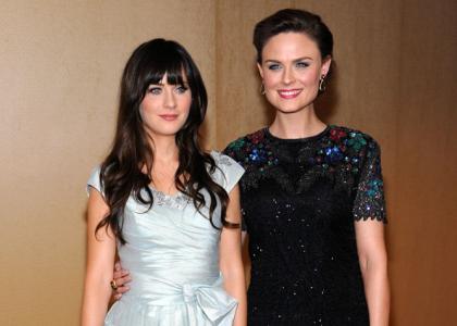 | Zooey (r) was a guest on Emily's show, "Bones." Zooey played Emily's look-alike cousin. |