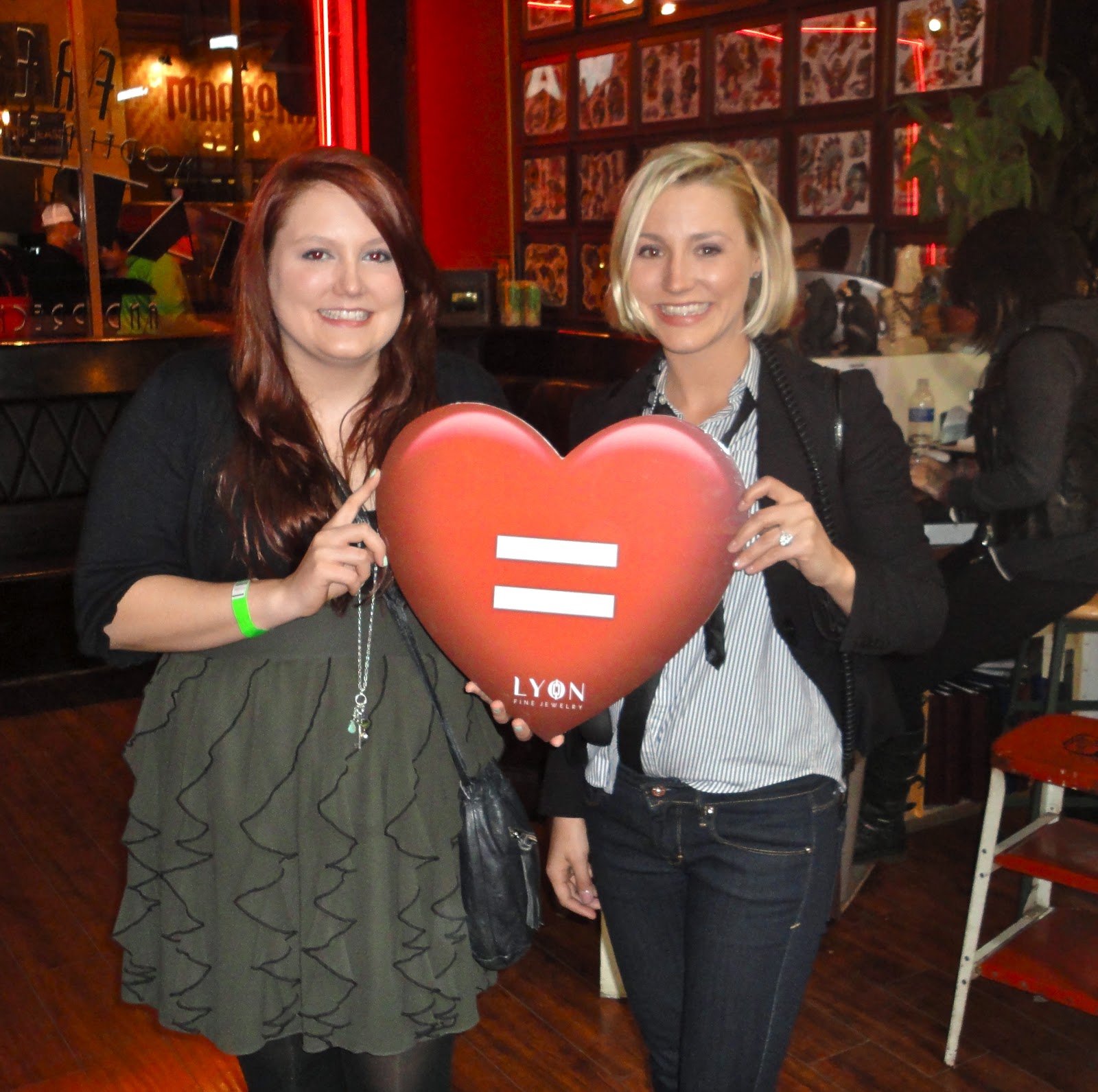 Russell, Mollie Thomas (the first openly gay woman to run for the Miss California crown) and others showed their support for the Equality movement by getting equal sign tattoos at Freak Chic during the party.
